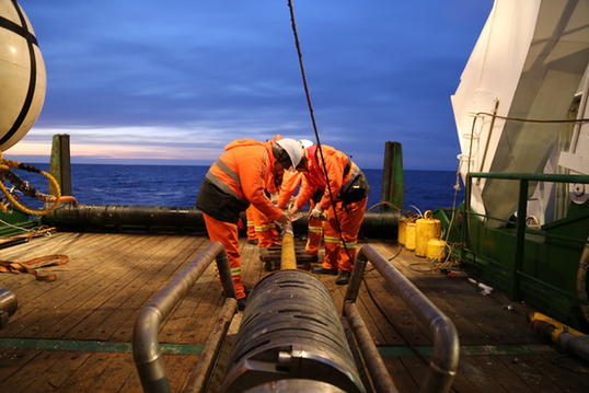 2017年1月,廣州海洋地質(zhì)調(diào)查局“海洋六號”科考船科技人員在南極海域使用自助研發(fā)的地?zé)崽结樳M(jìn)行科考作業(yè),這是我國首次開展地?zé)崽綔y并成功采集到南極海底地?zé)崃鲾?shù)據(jù)。記者 王攀 攝