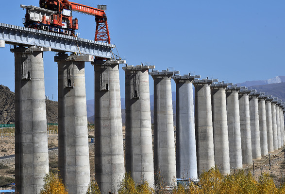 近日,川藏鐵路拉薩至林芝段昌果特大橋開始鋪設(shè)行軌排、架設(shè)梁片,標(biāo)志著川藏鐵路拉林段正式進(jìn)入鋪軌階段。記者 覺果 攝
