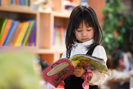 一名小朋友在合肥新華書店三孝口店內(nèi)看書。記者 張端 攝