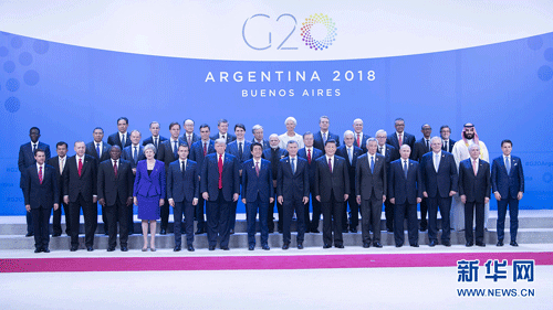 當(dāng)?shù)貢r(shí)間11月30日,二十國(guó)集團(tuán)領(lǐng)導(dǎo)人第十三次峰會(huì)在阿根廷布宜諾斯艾利斯舉行。國(guó)家主席習(xí)近平出席第一階段會(huì)議并發(fā)表題為《登高望遠(yuǎn),牢牢把握世界經(jīng)濟(jì)正確方向》的重要講話。這是習(xí)近平同其他與會(huì)領(lǐng)導(dǎo)人合影。 新華社記者 李濤 攝