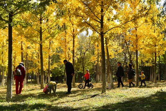 游客在北京通州大運(yùn)河森林公園游玩。記者 羅曉光 攝
