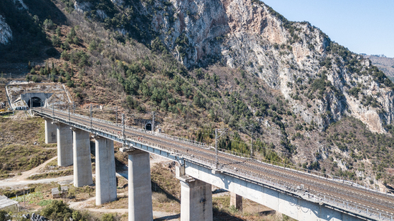 春運(yùn)期間,中國鐵路成都局集團(tuán)有限公司六盤水工電段的橋隧工人堅(jiān)守在位于烏蒙山區(qū)滬昆鐵路天生橋特大橋檢查崗位上,保障春運(yùn)列車安全通行。