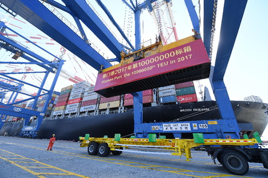 據(jù)相關(guān)部門數(shù)據(jù)顯示,目前廈門港共開通集裝箱航線140余條,年集裝箱吞吐量突破1000萬(wàn)標(biāo)箱。在“一帶一路”互聯(lián)互通方面,廈門共有“一帶一路”海上航線57條、空中航線20條,始發(fā)于廈門的中歐班列已通達(dá)12個(gè)國(guó)家30多個(gè)城市,實(shí)現(xiàn)“絲綢之路經(jīng)濟(jì)帶”和“21世紀(jì)海上絲綢之路”的無(wú)縫鏈接。