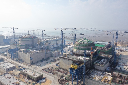 圖為2019年1月31日航拍的中核集團(tuán)福清核電5號機(jī)組(左)和6號機(jī)組(右)。記者 薛晨 攝
