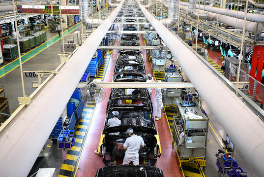 廣州汽車集團(tuán)乘用車有限公司的汽車生產(chǎn)線。記者 鄧華 攝