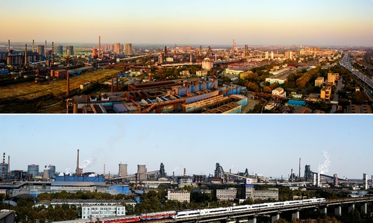 2015年11月27日拍攝的停產(chǎn)前濟(jì)鋼廠區(qū)的資料照片。新華社發(fā)
