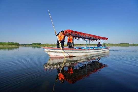 初夏的白洋淀,水清葦綠,暖風(fēng)習(xí)習(xí),游船途經(jīng)之處波光粼粼,猶如鑲嵌在華北平原上的一顆璀璨明珠。