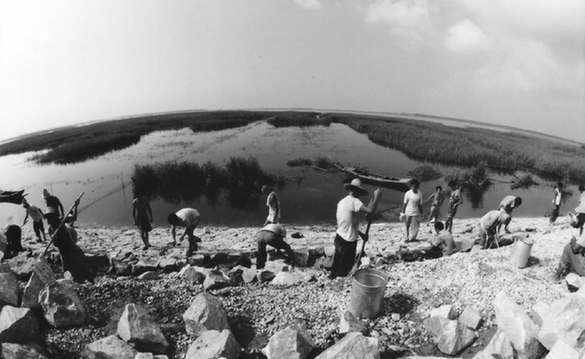 白洋淀砌石護堤防汛(攝于1994年)