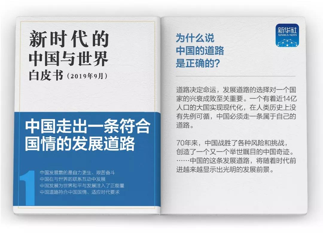 白皮書指出,70年來,中國發(fā)展取得成功,根本原因是在中國共產(chǎn)黨領(lǐng)導(dǎo)下,中國人民找到了中國特色社會主義這條正確發(fā)展道路并且沿著這條道路堅定不移地走下去。白皮書強調(diào),中國特色社會主義道路,是一條從本國國情出發(fā)確立的道路,是一條把人民利益放在首位的道路,是一條改革創(chuàng)新的道路,是一條在開放中謀求共同發(fā)展的道路,是一條全面依法治國的道路。中國的這條發(fā)展道路,符合中國國情,適應(yīng)時代要求,將隨著時代前進(jìn)越來越顯示出光明的發(fā)展前景。