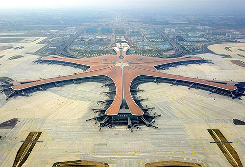 世界首次高鐵下穿機場航站樓、世界最大的無結(jié)構(gòu)縫一體化航站樓、世界集成度最高的航站樓、國內(nèi)首創(chuàng)的斜向跑道設(shè)計……作為目前全球建設(shè)規(guī)模最大的新建機場,大興國際機場的建設(shè)難度世界少有。