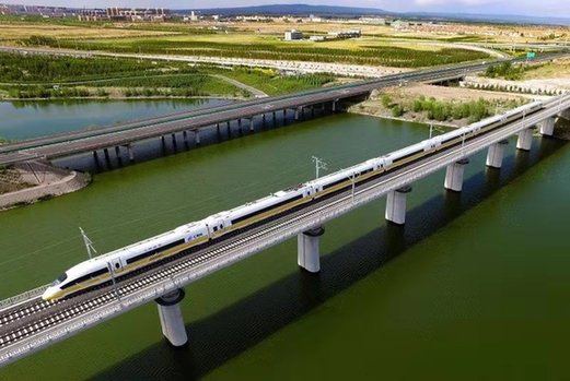 正在進(jìn)行高速綜合檢測的列車行駛在呼張高鐵烏蘭察布市境內(nèi)。新華社發(fā)(唐哲 攝)