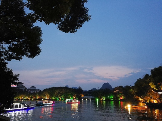 位于桂林市區(qū)的“兩江四湖”景區(qū)夜景。記者 董振國(guó) 攝