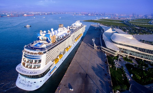 一艘郵輪??吭谔旖驀H郵輪碼頭。資料照片