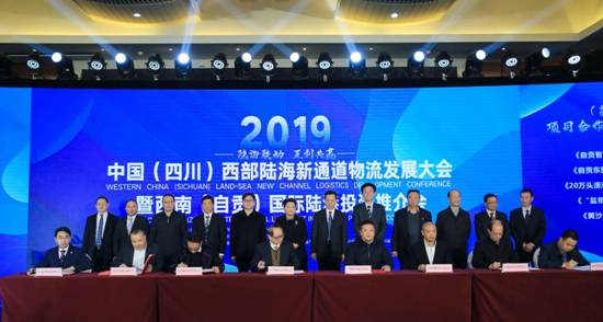 12月26日,由四川省人民政府口岸與物流辦公室、自貢市人民政府主辦,自貢市口岸與物流辦公室、四川省現(xiàn)代物流發(fā)展促進(jìn)會承辦的2019中國(四川)西部陸海新通道物流發(fā)展大會暨西南(自貢)國際陸港投資推介會、西部陸海新通道發(fā)展研討會同期舉行,會議現(xiàn)場簽約12個項(xiàng)目合作協(xié)議。
