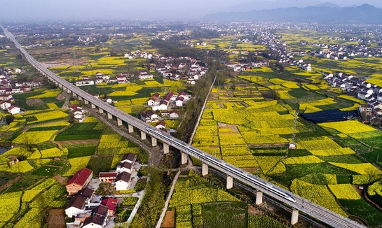 2019年6月,中國(guó)鐵路總公司改制成立的中國(guó)國(guó)家鐵路集團(tuán)有限公司在北京掛牌,為推動(dòng)鐵路高質(zhì)量發(fā)展提供了重要保障。中國(guó)鐵路涌動(dòng)著改革創(chuàng)新的澎湃熱情,圖為一列動(dòng)車正通過漢中市南鄭縣新集鎮(zhèn)油菜花海(無人機(jī)拍攝)。記者 陶明 攝