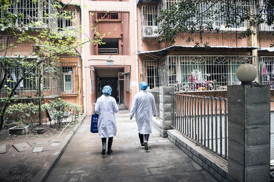 疫情期間招商局重慶長航醫(yī)院醫(yī)護(hù)人員下社區(qū)排查。企業(yè)供圖