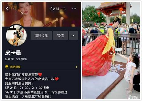 除了對(duì)美食的喜愛(ài),大家也因?yàn)檫@場(chǎng)直播喜歡上了“不倒翁小姐姐”馮佳晨,“一定要去看小姐姐的演出”道出了不少網(wǎng)友的心聲。也有網(wǎng)友問(wèn)“啥時(shí)候能看到小姐姐演出呢?”。悄悄告訴你,在抖音號(hào)“皮卡晨”就能看到大唐不夜城“不倒翁小姐姐”近期的演出安排和活動(dòng)花絮,想來(lái)的朋友記得關(guān)注?!捌たǔ俊焙痛筇撇灰钩堑馁N心不僅于此,近日,她們?cè)诙兑羯峡吹揭粋€(gè)小姑娘因?yàn)闆](méi)有看到演出大哭的視頻,立刻后臺(tái)回復(fù),并邀請(qǐng)小姑娘進(jìn)演出內(nèi)場(chǎng)和“皮卡晨”近距離互動(dòng)?!包c(diǎn)贊”這樣的“皮卡晨”和西安文旅人的“五星級(jí)服務(wù)”,讓西安這座城更有溫度。