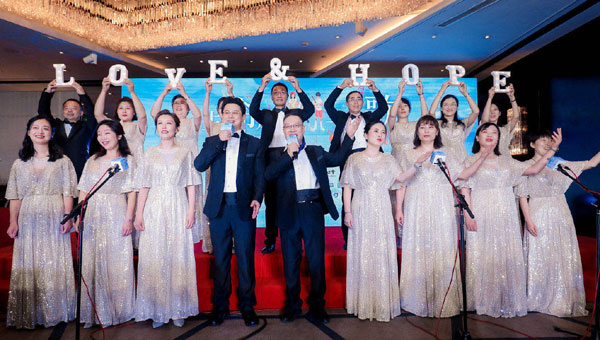 晚會(huì)現(xiàn)場(chǎng),中國(guó)器官移植發(fā)展基金會(huì)工作人員合唱《You raise me up》《相逢是首歌》兩首歌,弘揚(yáng)公民志愿捐獻(xiàn)大愛(ài)精神。(圖片來(lái)源:中國(guó)器官移植發(fā)展基金會(huì))