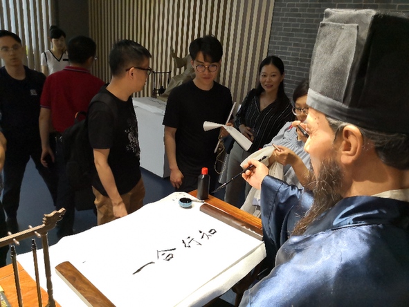 圖為寧波研制的機器人正在模仿王陽明書寫“知行合一”。記者 方益波 攝