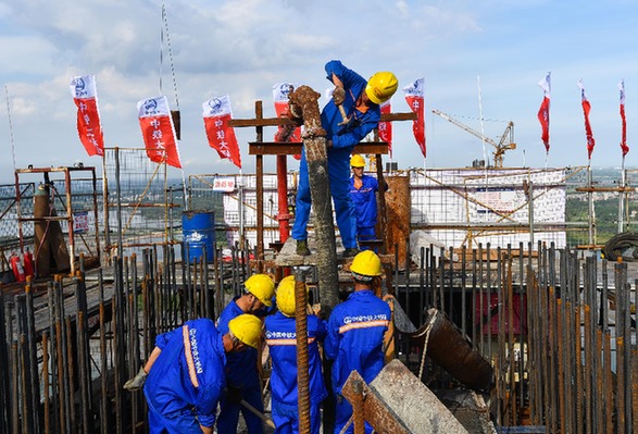 7月18日,中鐵大橋局施工人員在湛江調(diào)順跨海大橋西主塔左幅進(jìn)行封頂混凝土澆筑。當(dāng)日,由中鐵大橋局承建的湛江調(diào)順跨海大橋西主塔左右兩幅成功封頂,該橋東西兩座主塔已全部完成封頂,預(yù)計(jì)年底合龍。