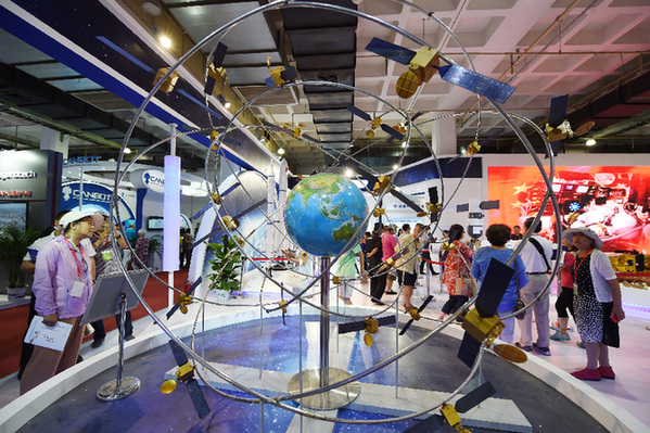 圖為此前參觀者在第二十屆中國(guó)北京國(guó)際科技產(chǎn)業(yè)博覽會(huì)上參觀展出的北斗衛(wèi)星導(dǎo)航系統(tǒng)模型。記者 鞠煥宗 攝