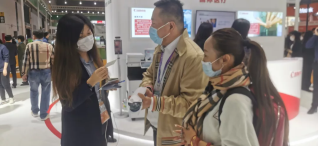 區(qū)投促中心與馬橋鎮(zhèn)招商人員拜訪佳能展臺(tái)