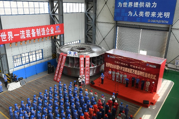 世界首臺長短葉片白鶴灘百萬精品轉(zhuǎn)輪順利通過驗(yàn)收。資料照片