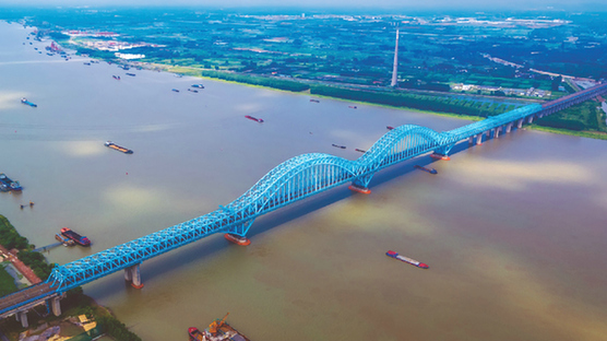 中鐵寶橋參建的代表世界高鐵最高水平的京滬高鐵控制性工程——南京大勝關長江大橋。資料照片