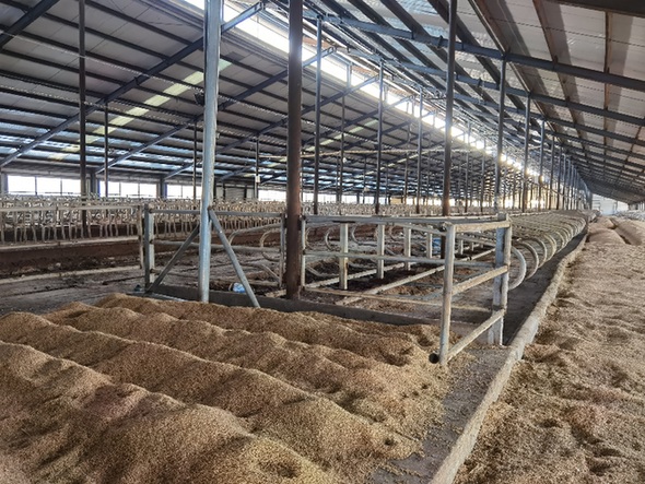記者走遍全部6棟牛舍,發(fā)現(xiàn)空無一牛,有的牛舍中晾了一些稻谷。偌大的養(yǎng)牛場,只剩更夫一人。更夫介紹,他從2020年春節(jié)后來到這里,就沒看到一頭牛,牛場榨奶廳只安裝了暖氣片,連榨奶設(shè)備都沒有。目前牛場因拖欠建設(shè)資金,已被承建方訴到法院進(jìn)行了財產(chǎn)保全,牛舍全被查封,他是替保全方看大門的。