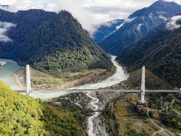川藏公路通麥路段上的迫龍溝特大橋。記者 孫非 攝