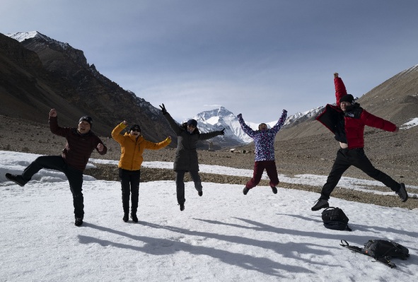 游客在珠峰景區(qū)內(nèi)留影。記者 普布扎西 攝