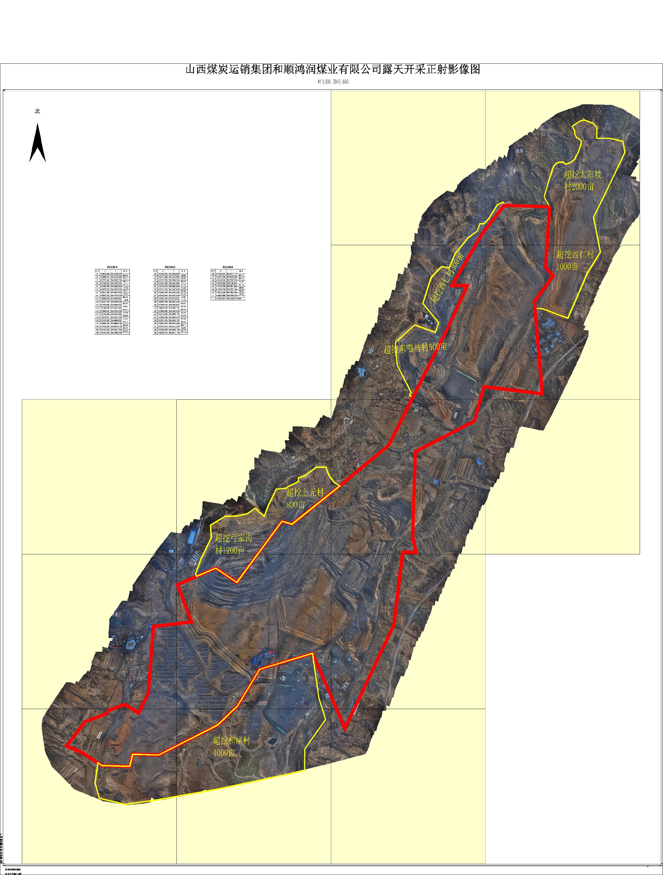 有知情人士披露,該礦區(qū)存在嚴重越界非法開采行為。一家甲級資質的測繪單位提供的該礦區(qū)露天開采正射影像圖顯示,該礦區(qū)越界范圍為河緒村4000畝、弓家溝村1200畝、上元村800畝、東喂馬村500畝、西仁村1300畝、太陽坡村2000畝,共計9800畝。