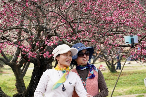 春節(jié)假期,武漢東湖梅園的梅花競(jìng)相綻放,吸引眾多市民來這里賞梅拍照。記者 余國慶 攝