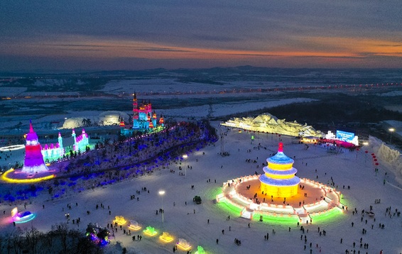 無(wú)人機(jī)拍攝的長(zhǎng)春冰雪新天地主題冰雪樂(lè)園。記者 許暢 攝