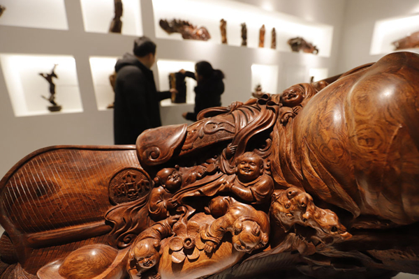 顧客在河北唐山遵化市新店子鎮(zhèn)康各莊村一家紅木雕刻企業(yè)展廳參觀。新華社發(fā)(劉滿倉 攝)