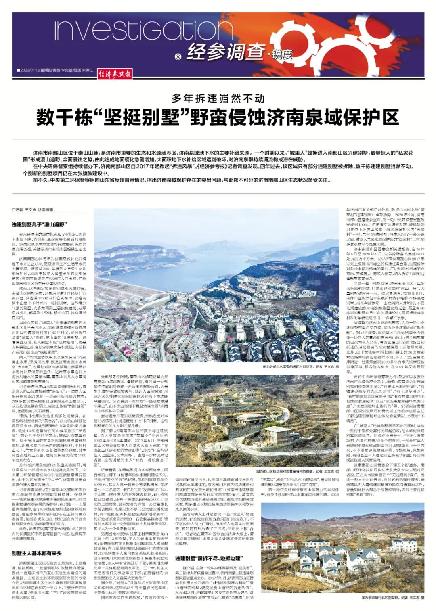 1月13日上午,《經(jīng)濟(jì)參考報(bào)》刊發(fā)《多年拆違巋然不動(dòng),數(shù)千棟“堅(jiān)挺別墅”野蠻侵蝕濟(jì)南泉域保護(hù)區(qū)》一文。