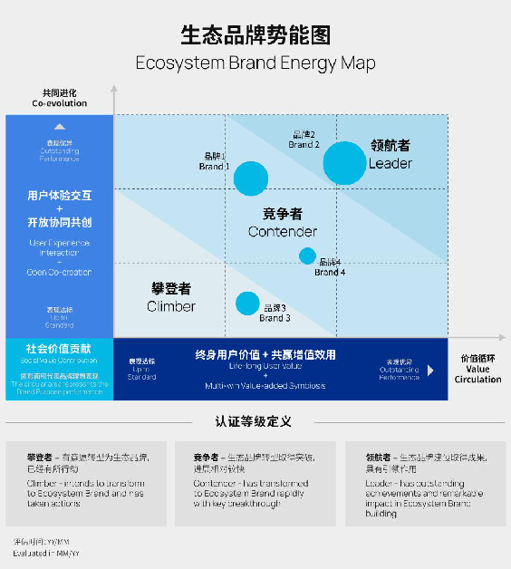 2021年,凱度、牛津大學(xué)賽德商學(xué)院、《哈佛商業(yè)評論》中文版一起合作,共同制定并全球首發(fā)「生態(tài)品牌認證體系」,從「共同進化」、「價值循環(huán)」和「品牌理想」三大視角及其下屬的五個核心維度(用戶體驗交互、開放協(xié)同共創(chuàng)、終身用戶價值、共贏增值效用、社會價值貢獻)和16項評估細則出發(fā),評估品牌在生態(tài)品牌轉(zhuǎn)型與打造過程中的成效和進化階段。
