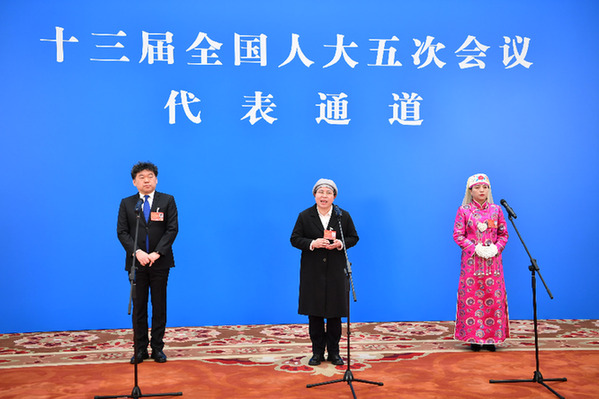 3月5日,第十三屆全國人民代表大會(huì)第五次會(huì)議舉行首場(chǎng)“代表通道”采訪活動(dòng)。這是全國人大代表通過網(wǎng)絡(luò)視頻方式接受采訪。新華社記者 李鑫 攝