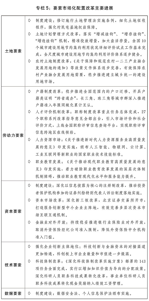 一是要素市場(chǎng)化配置體制機(jī)制繼續(xù)完善。完善市場(chǎng)體系基礎(chǔ)制度,出臺(tái)實(shí)施要素市場(chǎng)化配置綜合改革試點(diǎn)總體方案,市場(chǎng)準(zhǔn)入負(fù)面清單制度改革持續(xù)深化。建設(shè)高標(biāo)準(zhǔn)市場(chǎng)體系行動(dòng)方案落地實(shí)施,全國(guó)統(tǒng)一大市場(chǎng)建設(shè)穩(wěn)步進(jìn)行。招標(biāo)投標(biāo)領(lǐng)域優(yōu)化營(yíng)商環(huán)境長(zhǎng)效機(jī)制逐步健全,企業(yè)在招標(biāo)投標(biāo)、政府采購(gòu)等方面存在的差別化待遇進(jìn)一步消除,公共資源交易平臺(tái)整合共享深入推進(jìn),交易平臺(tái)服務(wù)行為進(jìn)一步規(guī)范,交易平臺(tái)區(qū)域一體化合作扎實(shí)開(kāi)展。