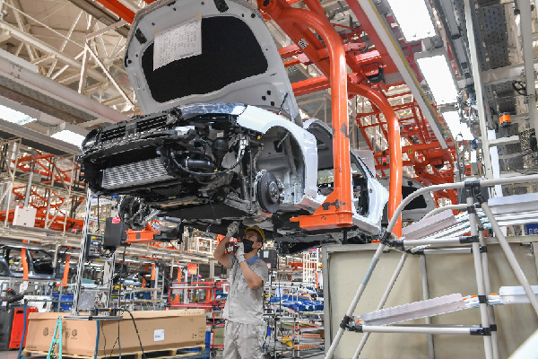 工人在一汽-大眾長春基地總裝車間裝配車輛。新華社記者 張楠 攝