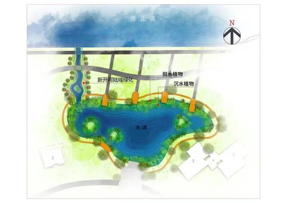 另一座公園是在張正浦段河道周邊,將進行河道疏浚、岸坡加固、新建及翻新防汛通道,聯(lián)合已建成的天麓、云霞綠地,建成一座親水公園,河水與陸域緊密相連,可濱水漫步,亦可林下穿行。