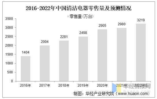 根據(jù)華經(jīng)產(chǎn)業(yè)研究院數(shù)據(jù)顯示,2016年至2021年,我國清潔電器市場規(guī)模由約101億元提升至309億元,期間年復(fù)合增長率為25.06%;零售量從1404萬臺,增長至2980萬臺,預(yù)計2022年零售量將超過3000萬臺。中國清潔電器市場方興未艾,前景廣闊。