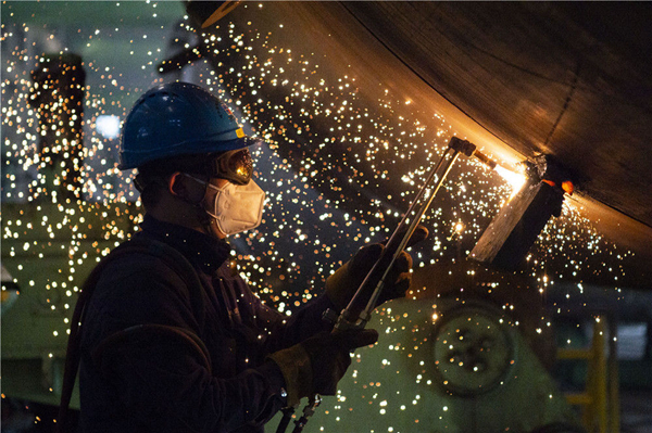 3月28日,工人在哈電集團(tuán)哈爾濱鍋爐廠(chǎng)有限責(zé)任公司生產(chǎn)車(chē)間內(nèi)作業(yè),在從嚴(yán)從實(shí)做好防控工作的同時(shí)穩(wěn)產(chǎn)保供。新華社記者 謝劍飛 攝