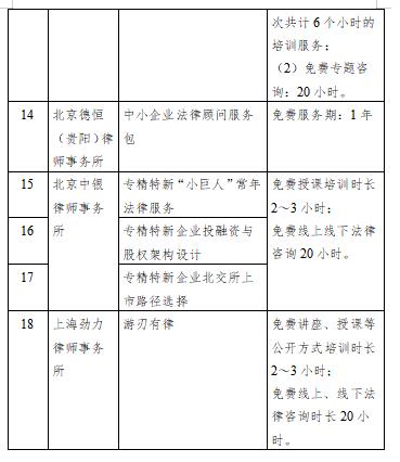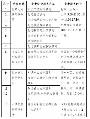 為幫助中小企業(yè)特別是“專精特新”中小企業(yè)獲得精準、有效的法律服務,中國中小企業(yè)發(fā)展促進中心向法律服務機構開展了公益服務項目征集工作。最終優(yōu)選了7家在全國或區(qū)域具有較高專業(yè)水平、較強社會責任意識、公益服務能力過硬的法律服務機構提供的18項法律服務產(chǎn)品組成服務包,涵蓋公司治理、企業(yè)合規(guī)、融資上市、知識產(chǎn)權、科技成果轉化、股權稅務、勞動糾紛、爭議解決、房地產(chǎn)與建設工程、游戲產(chǎn)業(yè)法律服務等領域,向“專精特新”及“小巨人”企業(yè)免費提供。服務產(chǎn)品特色突出、針對性強,能較好地滿足專精特新及“小巨人”企業(yè)實際法律需求。