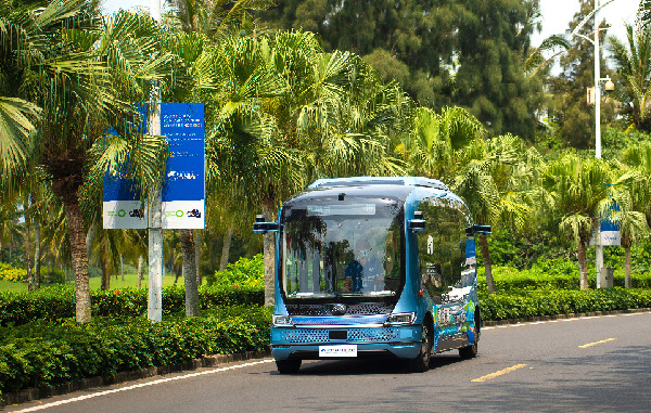 在博鰲亞洲論壇國際會議中心周邊投入試運營的新能源自動駕駛小巴(4月16日攝)。