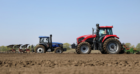 4月下旬,在臺(tái)安縣達(dá)牛鎮(zhèn)十四家子村大豆基地,農(nóng)機(jī)手駕駛農(nóng)機(jī)對(duì)農(nóng)田進(jìn)行翻耕。
