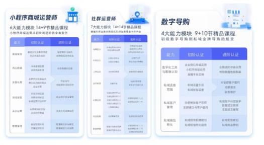 其中,小程序商城運(yùn)營(yíng)師將圍繞商城、商品、活動(dòng)、會(huì)員、數(shù)據(jù)等維度開(kāi)展能力進(jìn)階培訓(xùn);社群運(yùn)營(yíng)師將從場(chǎng)景、數(shù)據(jù)、流量、工具等層面助力培養(yǎng)精細(xì)化社群運(yùn)營(yíng)操盤(pán)手;數(shù)字導(dǎo)購(gòu)則圍繞微信生態(tài)工具的使用、流量挖掘、客戶(hù)管理及轉(zhuǎn)化打造金牌導(dǎo)購(gòu)。據(jù)悉,目前首批內(nèi)測(cè)學(xué)員名額已開(kāi)放。