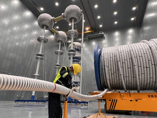 圖為東方電纜工作人員正在做產(chǎn)品檢測試驗。資料照片