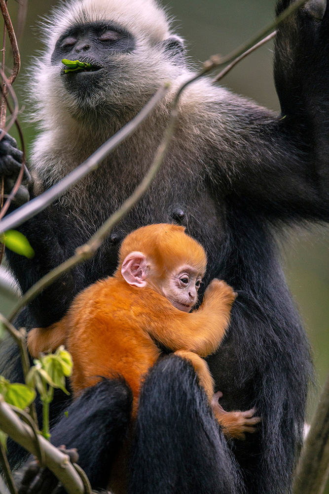 它們以猴群為社會基本結(jié)構(gòu),新生的白頭葉猴全身呈金黃色,之后逐漸長成白頭、白肩、長尾巴的模樣。