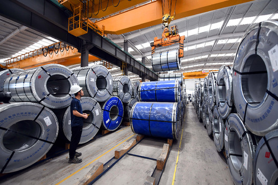6月30日,山東日照一家新材料公司工人將鋼卷裝車外運(yùn)。近年來,山東日照鋼鐵產(chǎn)業(yè)加速向精品化、綠色化、智能化、融合化方向轉(zhuǎn)型發(fā)展,形成以鋼鐵生產(chǎn)企業(yè)為引領(lǐng),鋼材加工、裝備制造、零部件制造等配套產(chǎn)業(yè)集群式發(fā)展的新格局。2021年,日照市鋼鐵產(chǎn)業(yè)產(chǎn)值突破1900億元。